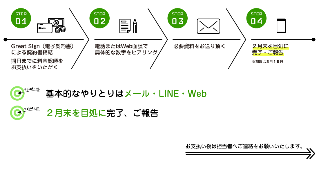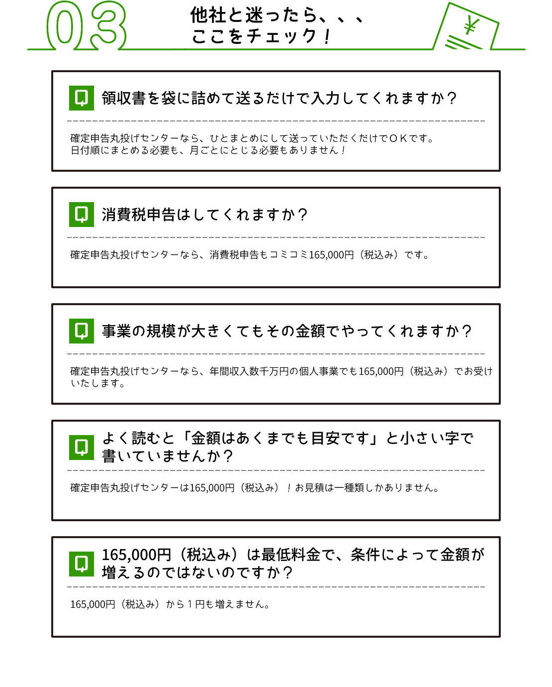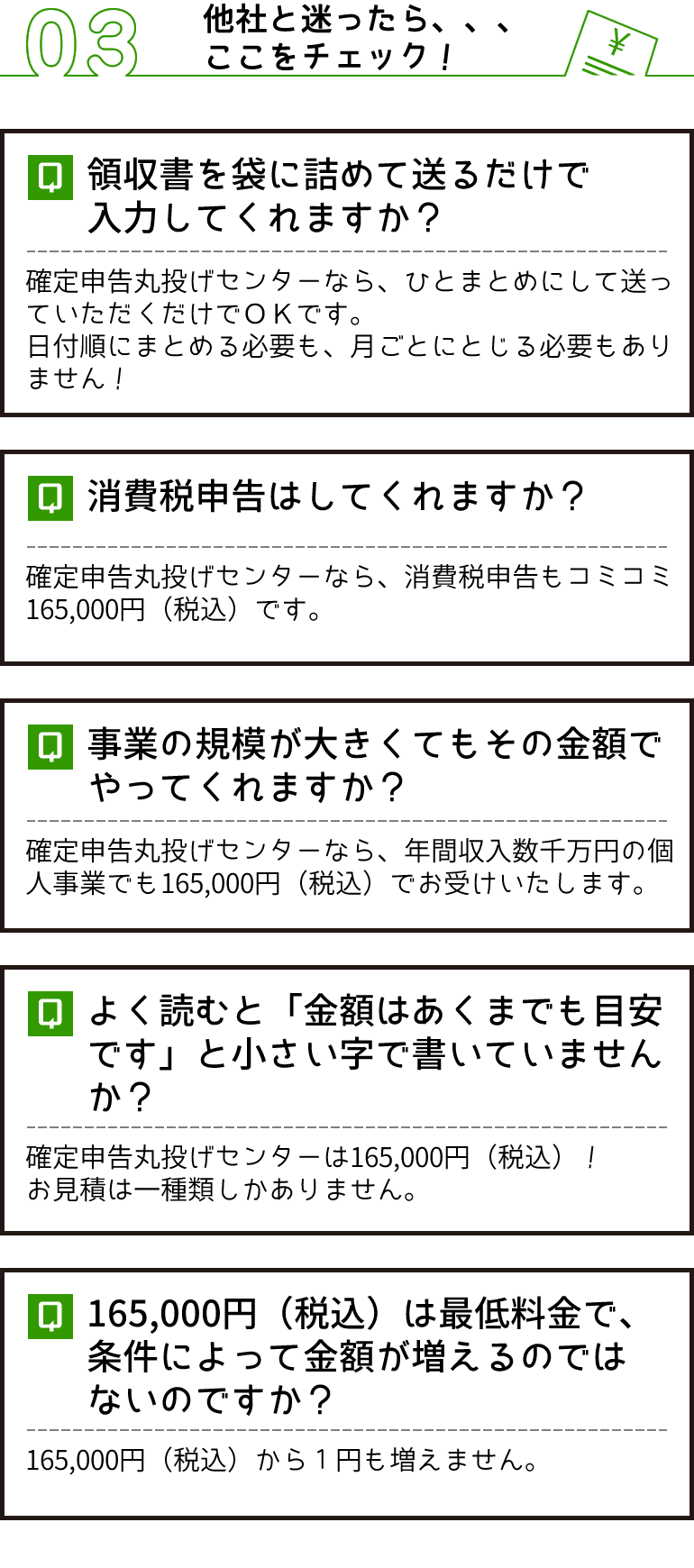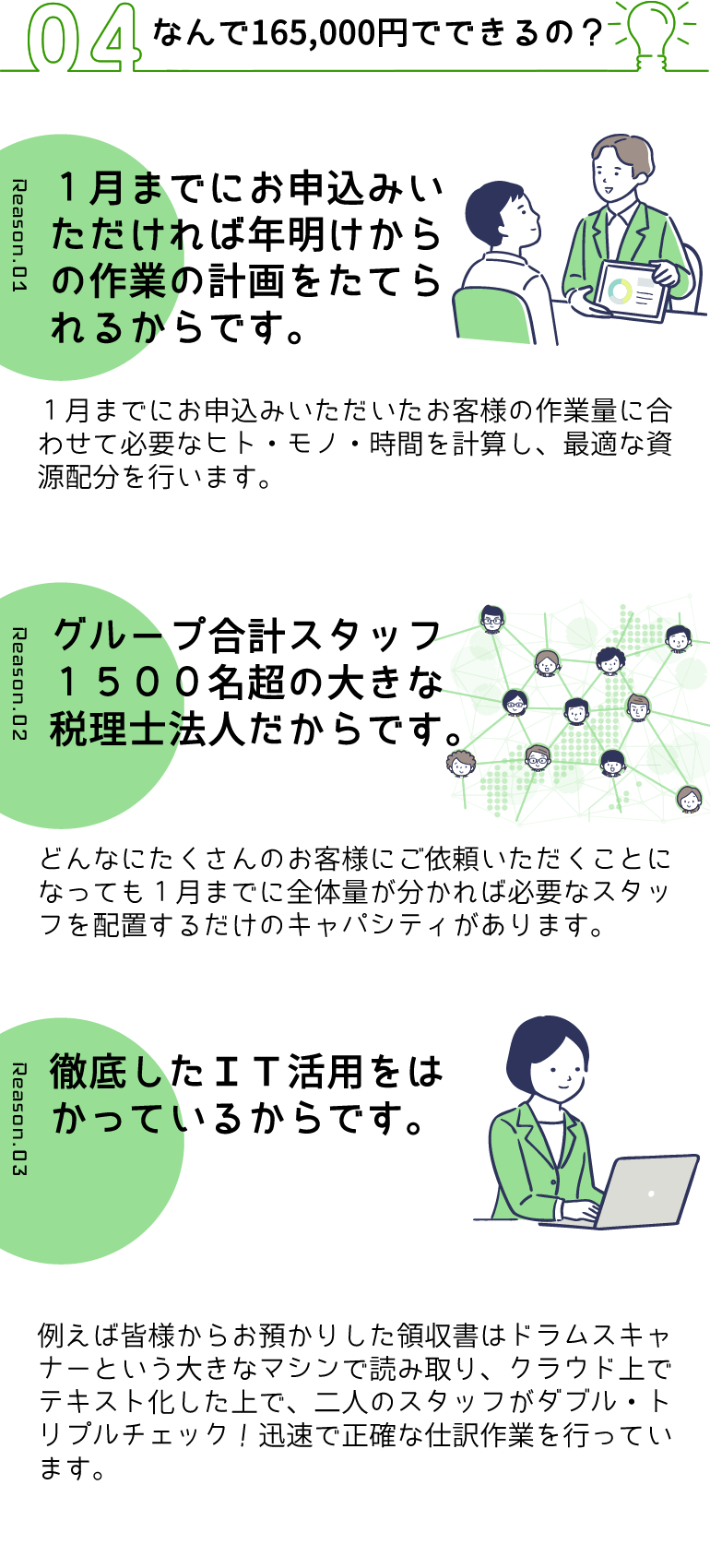 | 青色申告 | 通常300,000 円(税込み)~のところ 165,000 円(税込み)~ ※1月末までのご入金で